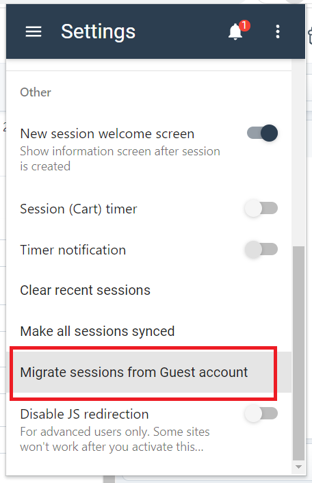 It is important to note that migrating sessions from a regular (registered) account to a guest account is not supported.
